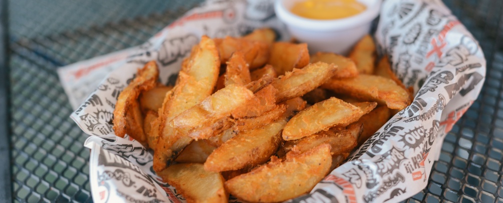 Gajos de papas sazonadas con una mezcla de ingredientes ultra secretos, acompañadas con queso Cheddar.
