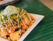 Crujientes tortillas de Maiz Servidas con pollo a la parrilla o con el sabroso chorizo de la casa y rico queso cheddar. Ideal para paladares mas sencillos.