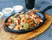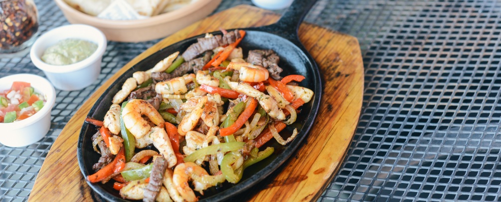 Magnifica combinación de arrachera, pollo y camarones parrillados y sazonados al estilo Comicx con pimientos verdes y rojos, cebolla asada, servidas en sartén caliente acompañadas de salsa pico de gallo, guacamole y crema.