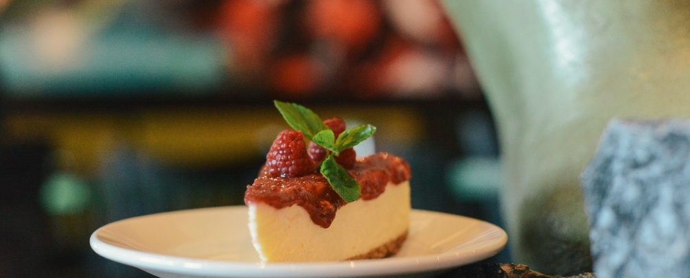 Para cerrar con broche de oro no hay nada mejor que una deliciosa porción de pastel de frambuesa decorado con hojas de menta y por supuesto frambuesas.
